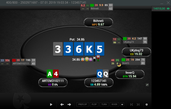 Да и в той раздаче если бы я сразу запушил ту раздачу я бы проиграл все равно, если бы он коллировал, а если бы нет то считай остался бы ни с чем или нет?