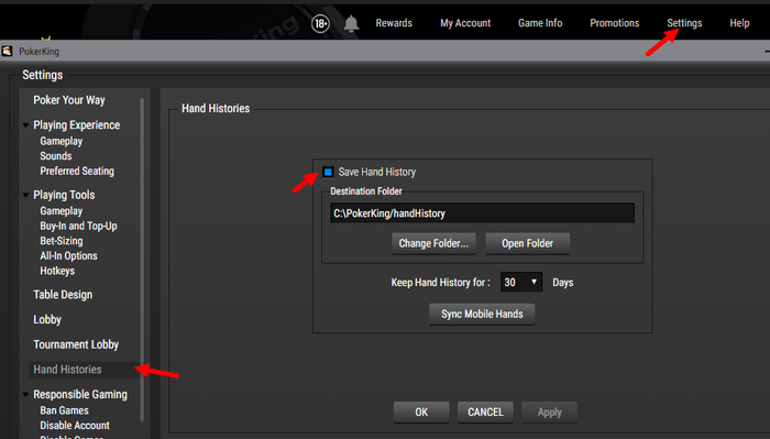 подскажите, пожалуйста, в чем может быть проблема? Не сохраняется история раздач в покер кинге...ни кэш, ни турниры. Язык стоит английский