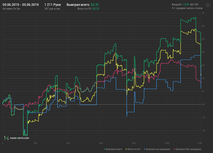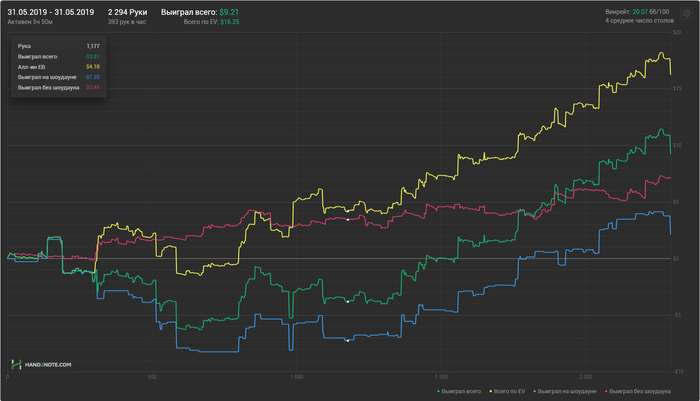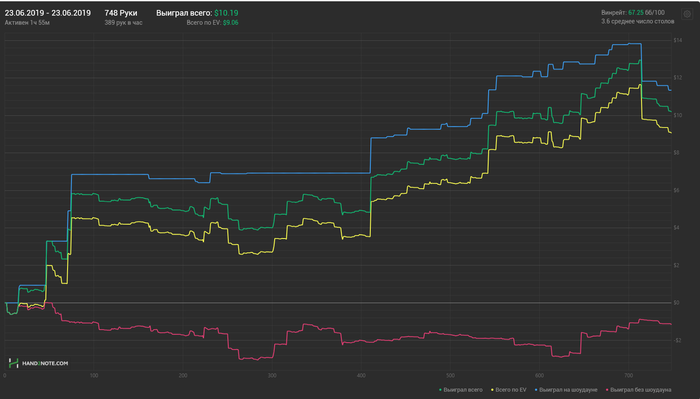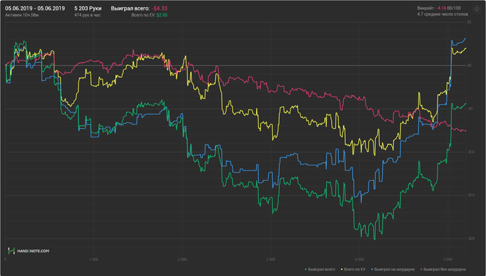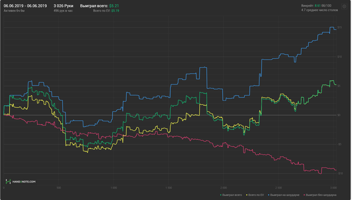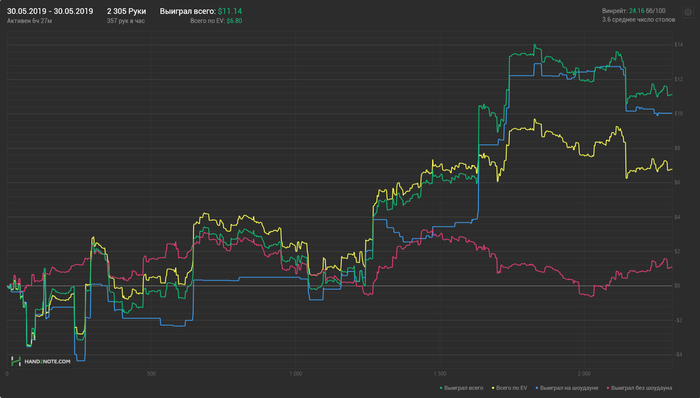 Сегодняшний плюсовый график,мог быть и лучше,если бы не психологическая составляющая моей игры. Интересных раздач для разбора нет. На переезды всем похуй,включая меня.
