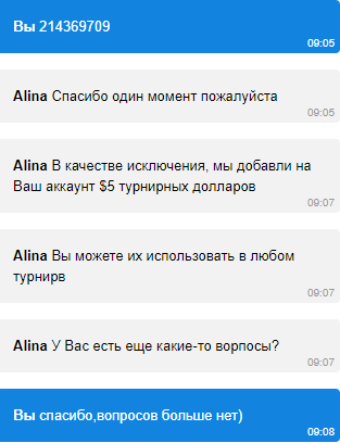 Далее вылетел из турика спин&гоу 5$,но не из за своей тупости,а потому что меня выкинуло из акка,сервера пати явно трещали по швам в тот злополучный денек. Перед вылетом был хедз-ап я обгонял на пару бб своего оппа. Добрый саппорт вник в суть моей проблемы и вернул 5$ турнирными деньгами + горящий оппонент прибавил мне настроения(чатик)