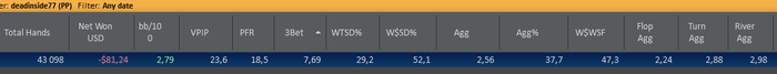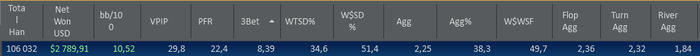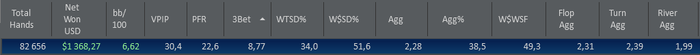 Итак,вот я поиграл на пати нл10 и нл2 в сумме наигранно 45к рук. Думаю пришло время посмотреть,что не так с моей игрой и почему я сосу) Как раз 2 моих близких друга(игроки нл25) предоставили мне свою базу 82к рук 6бб/100 и 106к рук 10бб/100. Начнем основных показателей: Мои: Рег 1 : Рег 2 : Первое,что бросается в глаза это VPIP у них он намного выше. Получается они заходят в банки колдколом намного чаще меня и видимо это приносит им прибыль. PFR напрямую связан с 3bet, признаюсь честно я не всегда точно уверен в своих 3бетах у меня есть чарты 3бета по позициям все как надо,но я играл на пати,а там был сессионный хад,поэтому я примерно знал скок открывать надо,но открывался больше по "чуечке" из за этого легкая неуверенность в себе и как следствие заниженный 3бет. Следующие показатели (https://academypoker.ru/blogs/ubijstvennaya-svyazka-iz-trekh-nepopulyarnykh-statistik-hm2.html):до вскрытия я дохожу реже из чего я могу сделать вывод,что я часто сбрасываю руки лучше. На вскрытии я выигрываю чуть чуть больше,но это обусловлено прошлым предложением. И видя флоп я сдаюсь чаще,думаю вывод очевиден. Агрессия по сути своей отображает,как часто я повышаю. Ну флоп я иногда слоуплею,даже в опасные доски,чтобы потом большими ставочками собрать вэлью,ведь многие игроки включая меня,сразу же исключают из твоего диапазона сильные попадания при чеке флопа на опасном борде. Ну из за таких мыслей терн у меня повыше агрессия.. А про ривер все говорят,что на микролимитах не доблефовывают ривер,так вот я доблефовываю