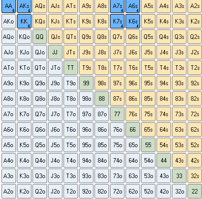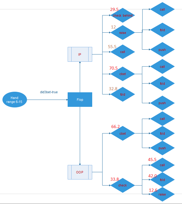 Построил кривенькое дерево решений для флопа в 3бет банке(я сделал 3бет),для терна и ривера по аналогии изи сделать.Осталось распихать комбы на разных структурах доски.Это я уже сделаю за кадром Хз поможет это или нет,но катать без хада на пати желания нет) Бля какая же жесть,я за 5$ борюсь по 5 часов.Хуево быть ничтожеством PokerStars No-Limit Hold'em, $200.00 BB (2 handed)