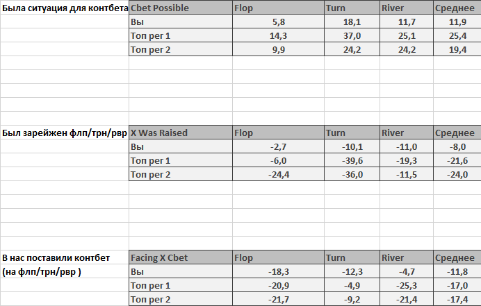 Теперь сравним статы более детально. Если че это не мой метод,я слишком глуп,чтобы создать что то новое. На этом скрине мы сравниваем EVbb/100 при определенном действии,так будет легче определить,где я проигрываю деньги. Далее буду кидать правую сторону. Колл 3бета: В принципе мои винрейты "сравнимы" с винрейтами рега №1,но судя по винрейтам рега номер 2 следует посмотреть с чем и на каких позициях он так успешно колит 3беты) Сделал 3бет: Бля это без комментариев. Мне очень не везло с попаданием в доску, но не могло же 1к раз не повезти я играю 3беты реже и хуже. Так что просмотр розыгрыша рук регуляров во время 3бета в приоритете. Засквизили: не понимаю почему так... Да я вообще не понимаю,как правильно сквизить и даже не пытался думать об этом... Пожалуй стоит уделить этому время... Сделали 4бет: Мне уже стыдно,что я такое дно... Да я постоянно упираюсь КК в АА и я 4 бечу ток так