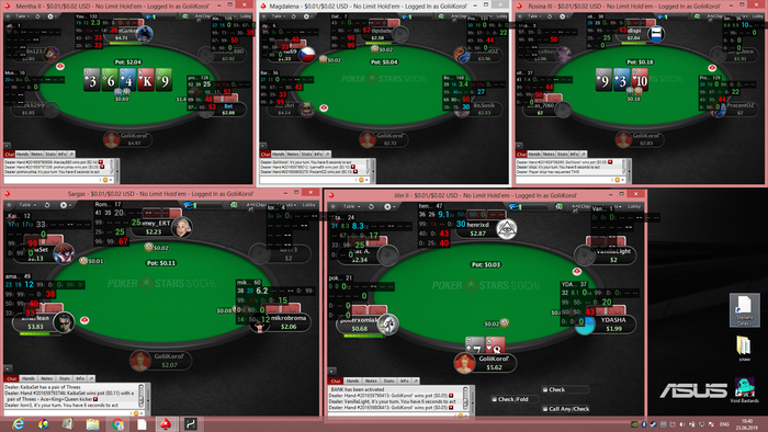 План на завтра разобрать руки,которые сегодня отметил их там штук 10,посмотреть 3беты и разобрать еще 10 раздач. Поиграть часика 4. Вроде бы изи,должен справиться. Катка без разбора рук и работы в хм ничего не дает. Сколько я не играю умнее не становлюсь.Пора заняться разбором по плотнее иначе на нл10 ток через год вскарабкаюсь Сегодня прервал разбор,потому что вечер и я устал.
