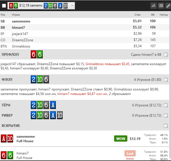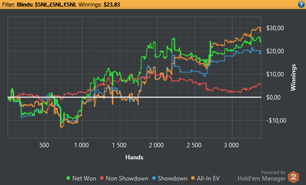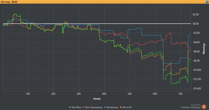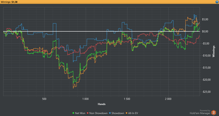 Вернулся в покер. Было сложно вернуться к игре по причинам личным и финансовым. Отыграл дистанцию в 30к в ноль, под конец еще словил стрик из переездов при алыне, где у оппов на победу было от 2 до 10%. За последние пару сессий получил дикий переап за всю боль, +100$. Сейчас хочется играть всё больше и больше, есть микромотивации, одна из которых - погашение долгов, в т.ч. арбитражного. Как станет спокойнее мне и немного разгребусь с дерьмом, в которое сам попал, поделюсь КулСториями из своей жизни (возможно). Также скоро зайду на НЛ 10 (опять)