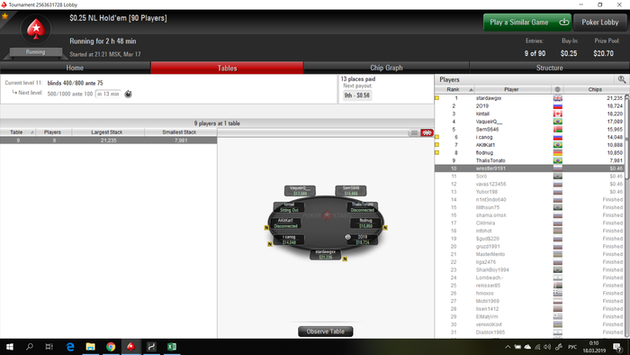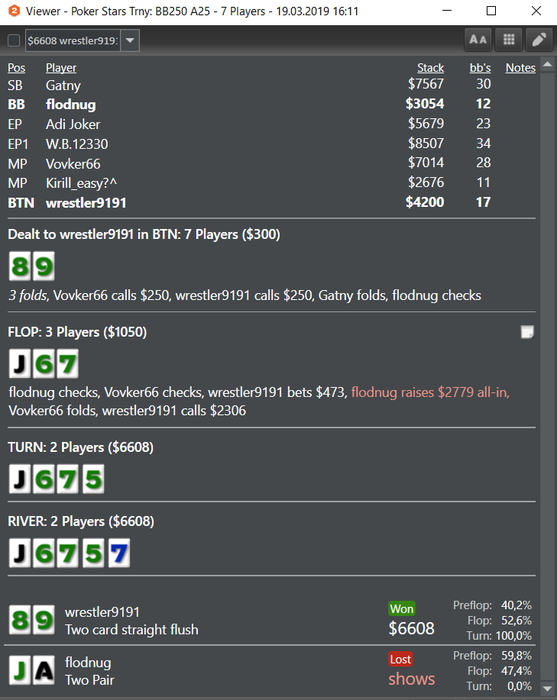 zay41k, Да, делаю заметки, когда подмечаю какие-то особенности. Но по больше части там играют стандатно плохие игроки, против которых примерно одна игра, к тому же я никому не давал проявить себя. Давил на стол жестким образом, почти все перефолживали.