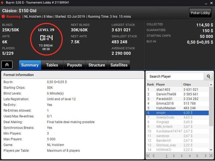 - по времени у меня есть еще почти полгода (сроки марафона). Всё еще верю в выполнение цели до 31.12.2019; - текущий банкролл - 191$; - текущий АБИ в районе 0.60$, стараюсь придерживаться консервативного БРМ; - начал миксовать МТТ за 1.10$, 1.50$; - с учетом основной работы (5/2), получается катать по будням - 5-6 турниров в день (на пати) и по выходным - 15-30 турниров в день; - если все будет ок, то планирую перейти полностью на 1$-2.20$ МТТ в августе. Если получится раньше - вообще огонь; - параллельно записался на курсы английского. По времени стало еще тяжелее, но нам не привыкать; - еженедельно к пятнице ощущается заметный недосып; - очень рад, что к блогу прибавилось пару читателей. Респект вам!