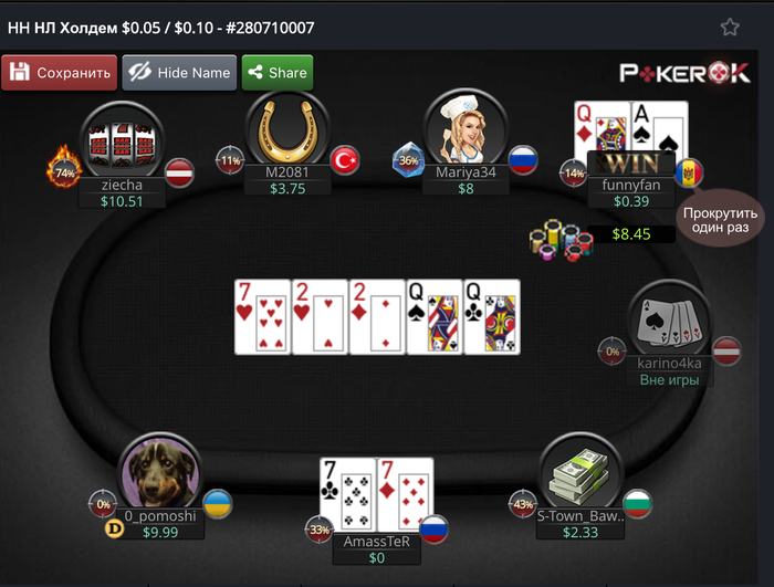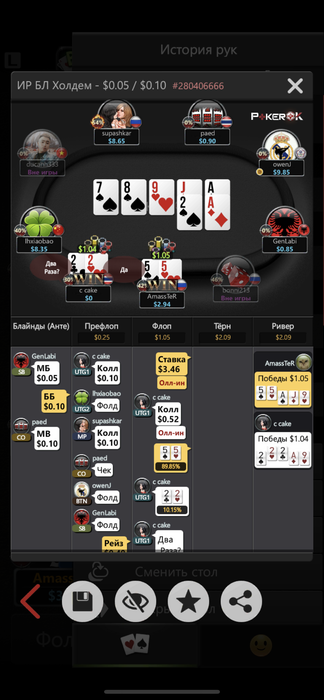 Ещё очень нравиться - что сразу за столом без всяких дополнительных программ есть показатель vpip у игроков😇✅👍🏼 Наверное поэтому не секунды даже не думал над коллом на флопе)))