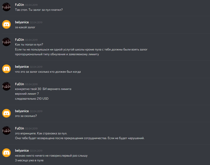 все в переписке видно что 29 якобы я должен буду перевести хотя да же я сам уже догнал что не так,они специально меня дизинформируют и тянут до последнего не говоря и не объясняя и тут происходит следующие вместо того что бы мне все четко донести они понимают что возможно я начну недовольства что возникнет ситуация которая собственно и возникла и пока я не сорвался надо с меня еще денег содрать и ставят меня перед фактом что я еще 200 баксов им должен за залог что каждый кто вступает в пул платит залог ,но я сто раз при вступлении спрашивал и мне сказал как и всегда-братан это формальность ,будешь платить 2 рабочих баина в месяц,а тут хоп),в общем нагружают меня что я уже 600 должен,я в шоке ,пишу главному менеджеру как так и тд и тп,они начинают вату катать кто тебя принимал как принимали как это так вышло что приняли так что не заплатил залог ,как они вообще там работают не пойму ,в школу бесплатно зачем-то взяли что бы разучить меня выигрывать деньги а научить правильно выигрывать ЕВ) залог за то не взяли и вообще ни слово про него,за то это всплыло в конце 3 месяца,3 месяца играл и все норм как поняли что жареным запахло так н6ачали нагружать,так мало того главный мне еще и говорит,бро давай все порешаем давай мы тебе и тренера найдем который тебя будет учить в твоем стиле и кидает мне ценник на обучение я в акуе если чесно,это я просто вступил в пул БЕЗ ОБУЧЕНИЯ БЕЗ БЕКИНГА и в такие долги меня сразу вогнали,вобщем с главным договорильсь что это их косяк что про залог не упомунули ,договорились о созвоне чтоб пообщаться и он мне сам все объяснит но в место этого он мне просто тупо кинул ссылку на математика ихнего который должен был объяснить мне почему я остался должен им денег,уже привлекли третье лицо сами косяков напороли теперь кто-то что-то должен за них объяснять а тут и так все ясно. В общем это все еще в краце если надо кому могу подробно ,писать все это долго,все переписки в наличии скрины то же.могу все предоставить и показать так же пообщаться с кем угодно голосом. Должником себя не считаю,вся отвецтвенность на долг ложится на полностью некомпетентных,сотрудников пула которые только озабочены привлечением новых клиентов и обсасывание их на бабки любыми способами не исключая осознаное введение в заблуждение! Ну возможно это просто очередная инновация как они это называют ))))как бы я думаю все про эту школу и пул наслышаны и на джиипси у них есть арбитражи https://vzamazke.com/kak_shkola_pokera_vpluse_okazalos_v__mynuse__yzza_svoeho_rotozejstva_3360/ Честно и не хотел отвечать на эту дичь,но все же надо ответить что бы очистить свое имя и репутацию я на сайте 7 лет эти товарищи недавно и уже обосрались сто раз-удачи! Если что упустил, если остались у кого какие вопросы, скрины переписки еще что все в наличии на все отвечу. И лучше я буду неправильно выигрывать деньги чем правильно их проигрывать)