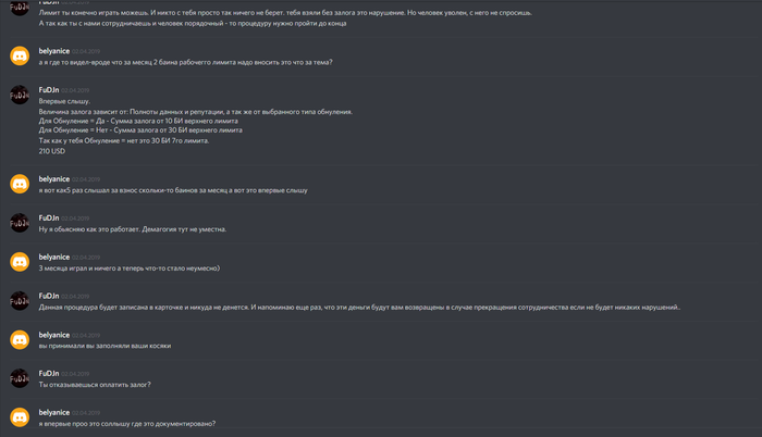 ну и посчитали они да же в итоге не правильно мой лимит 3 на седьмой я не мог идти так как ев не позволяло я их играл от себя 1 и 7 лимит а они все в кучу насчитали когда я начал разбираться мне начали опять мозги делать там у них очень хитрый украинский парень,вобщем один одно говорит второй другое и сами между собой не могут порешать и договориться)-переписка так же имеется)