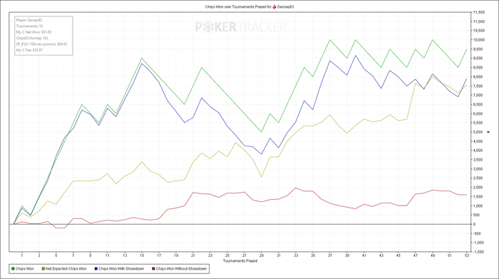По игре складывалось не очень, что по ЕВфишкам, что по реалу. Учитывая то что я каким-то чудом затащил три турнира 25х, все равно остался с недобором в 12 БИ.