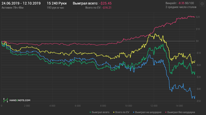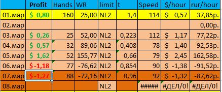 На этой недели так же по паре сессий на буднях и по 4 на выходных (теперь по 4 стола). Вроде выровнялся, теперь буду поднимать график