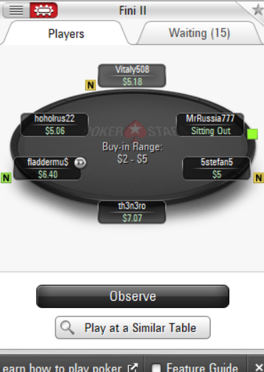 Feral Cow Poker PokerStars No-Limit Hold'em $0.02/$0.05 - 5 players