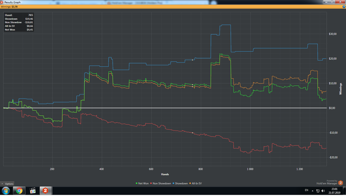 Вчера был занят дегустацией грузинского вина, откатал 200 рук, смысла выкладывать не видел. Сегодня с не совсем свежей головой решил покатать маленько, но начало очень сильно апать и пришлось катать около 5 часов, поляна была сладкой и пихали во всем мои натсы) Самый плюсовый день получился в итоге: