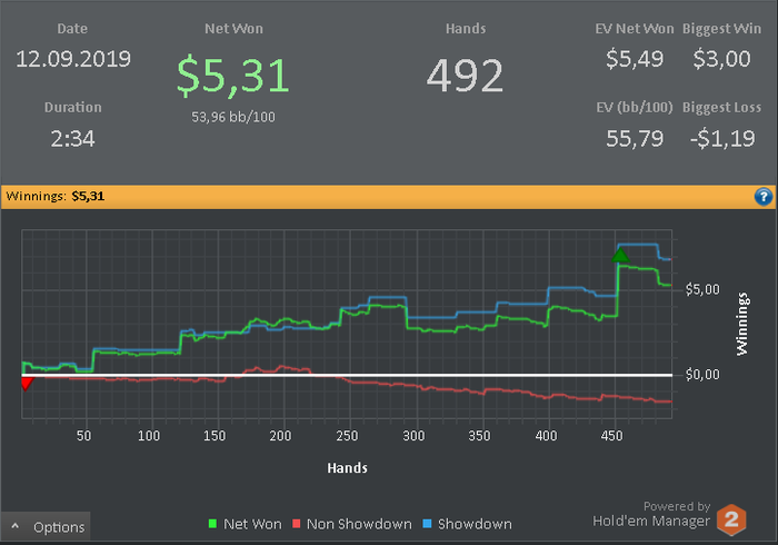 Pppaassha @ 18.9.2019 Dalamar74, думаю этот месяц доиграть на 2ке, чуть разобрать свою игру и если в конце месяца будет все хорошо с винрейтом, то пойду на 5ку. А еще я слышал такое, что когда переходишь на лимит выше, даже если брать ту же 5ку, то бэнкрол должен быть 500$(конкретно про NL5)