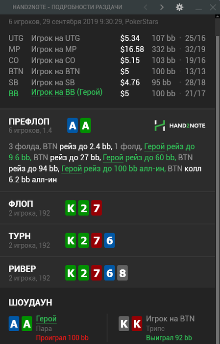 Думаю как же мне повезло и я прям обрадовался. Докупился бы этот челик до 100бб все могло закончится совсем по-другому.
