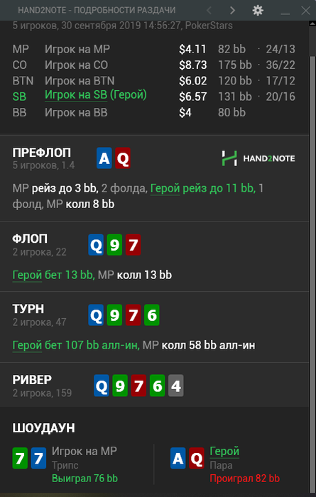Сегодня была для меня одна из самых сложных раздач с открытия блога. Исполнил вот такую линию против хорошего регуляра, очковал на ривере и понимал что у меня тут нет не какого шоудауна и нужно его выбивать.