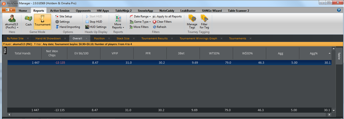 Поднимаю уровень агрессии, слишком пассивно играю... особое внимание обращаю на 3беты, стилы и рестилы. Ну и конечно продолжаем изучать пуш/фолд. P.S. Интересно ваше мнение по поводу моих успехов. Понятно, что дистанция маленькая, но все равно советы лишними не будут.