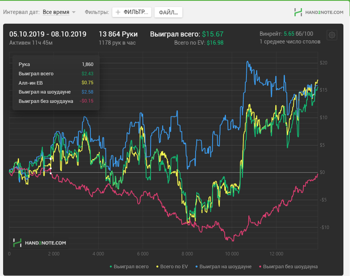 Первые 10к рук дались очень тяжело, не ожидал такого. Я просто натыкался на кулеры через раздачу, был момент когда проиграл 5би за 400-500рук. В какой-то момент впал в тильт по типу "Да какого сука хера мне вообще вносить деньги в банк без попадания и топовой руки, все равно вскроют, переедут или уебут ривером". Начал играть очень пасивно, почти что только по карте.