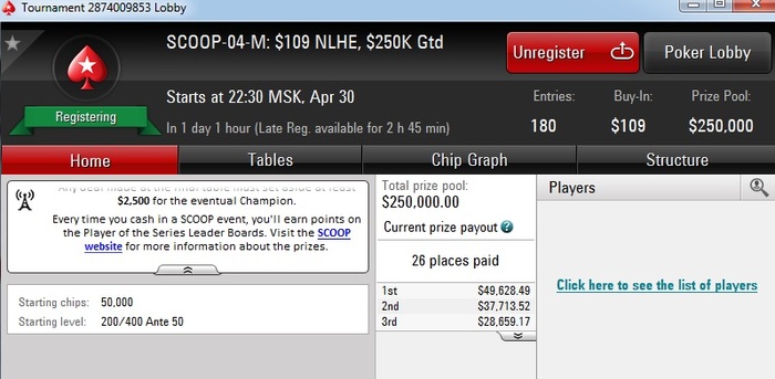 Ставил цель отыграть 20к рук с 18.04 по 01.05. Осталось 2 дня и 4к рук, но че-то не нету желания + начал работать. Поэтому как обещал разыграю 10$ среди тех кто плюсанул. Тем более старзы недавно подарили 10$ из сундука за их лаги... Отобрался на SCOOP через сателит за 4$ Поэтому(думаю ни кто против не будет) разыграю долю на этот турнир(будет + к ауре) получается будет 3 доли по 3,33$ Только нужно придумать, как это сделать честно... Турнир завтра в 22.30 по Мск.
