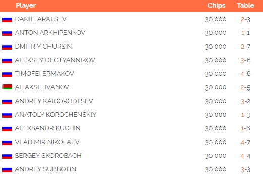 Привет! Начинаем репортажи с EAPT Grand Final. В течение ближайших четырёх дней будем следить за событиями в Russian Poker Championship. Сегодня - первые два флайта с уровнями по 30 и 20 минут. Поздняя регистрация открыта по 14-й уровень включительно, играем до ИТМ.