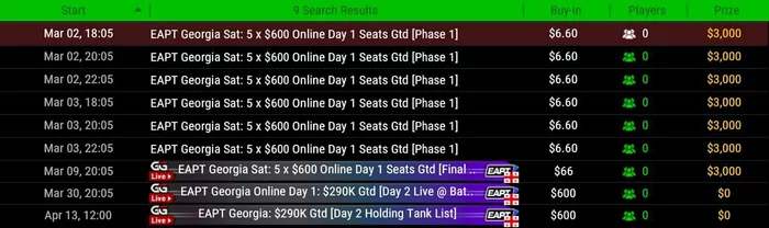 ✅ Финальная фаза: $66 бай-ин → 5 x $600 Main Event Online Day Seats GTD