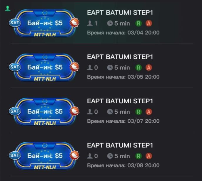 ⏰ Сателлиты по $5 проходят каждые вторник, среду, пятницу и субботу в 20:00. Время в расписании указано грузинское.