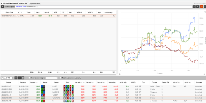 В этой раздаче опп похоже регуляр со статами 22/15/7 - 712 рук, но очень агресивно играл в этой сессии, я решил его скрыть, линия не логична, много гатшотов и фд не закрылось, но в него оказалась неплохая рука в этот раз.