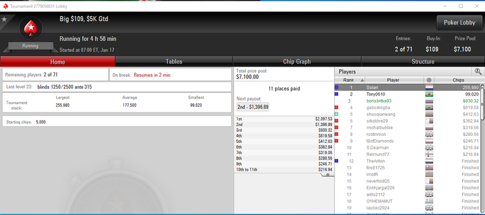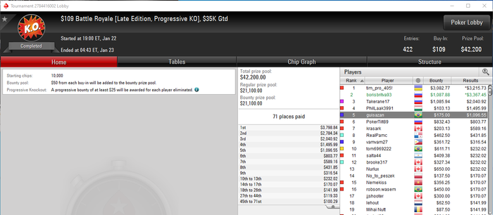 Всем привет. По поводу отыгрыша турниров я пока выступаю удолетворительно мог бы и лучше, в общей сумме не считал,но думаю не сильно много. По поводу финалок как всегда не 1ое скидываю, но даже на такой снгшечке посидеть приятно