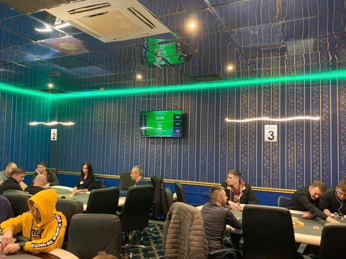 День 2 - 23 февраля, (Объедененный день, так же можно зайти 2 уровня) Buy-in 440бел.р. Стек 100к, Re-Entry. Уровни 40 минут, поздняя регистрация 2 уровня, Уровни начинаются с 1.5/3к