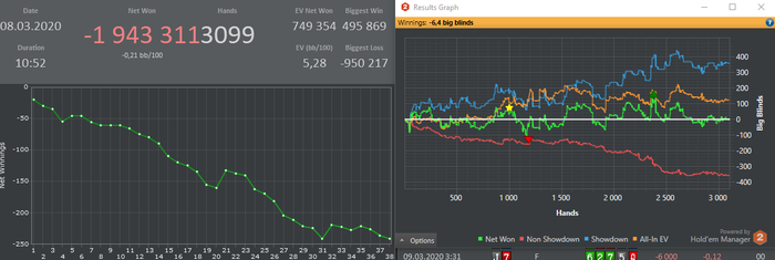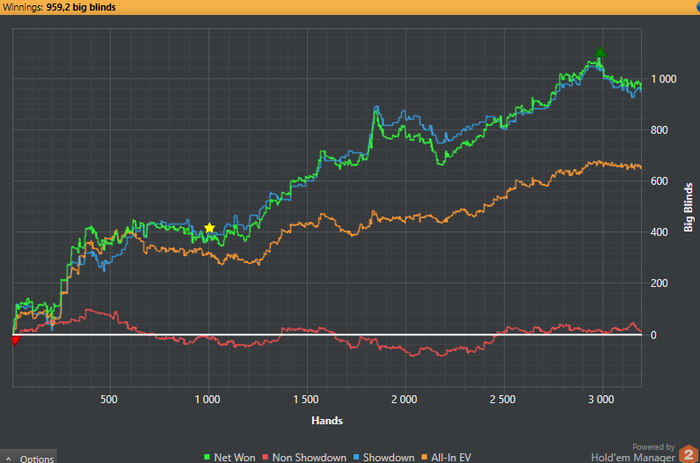 Ты только что-то закрыл или думал что закрыл, как в процессе появляется еще куча дыр.И это только те, что ты видишь сам и это может быть только вершина айсберга.И при таких условиях не всегда оптимальной игры, отсутствия должного селекта и еще кучи факторов, получается показывать винрейт в районе 7-8 и 7 на ББ999+.Раньше я думал что это эдакий верх достижимого показателя среди регов.Но чем больше роюсь в базе, (она далеко не идеальна