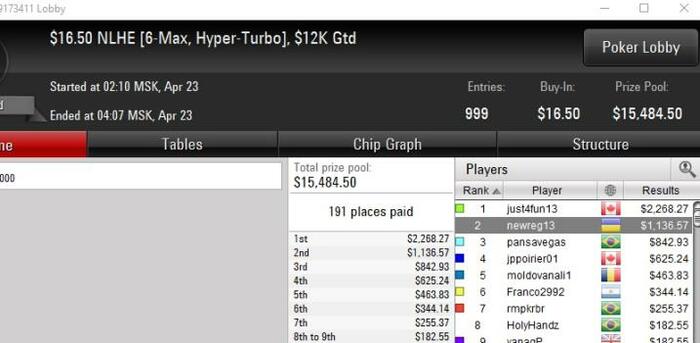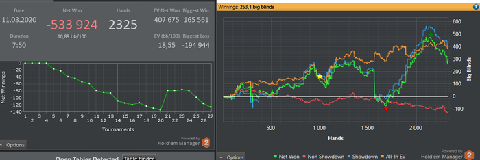 Было влом писать каждый раз отчеты, так как все одинаково.Было пару сессий норм по ев и в большия(для меня минус) и были две сессии в минус по ев.Летел минус 1к, но потом отмазал одним топ2(1300евро).После череды хороших сессий хочется больше катать и больше грузить.Заметил что хорошо получается концентрироваться и не совершать больших ошибок, когда нормальное кол-во столов и турниров во время сессии.Так как часть ошибок бывало как буд-то от скуки или потери концентрации(но не всегда).