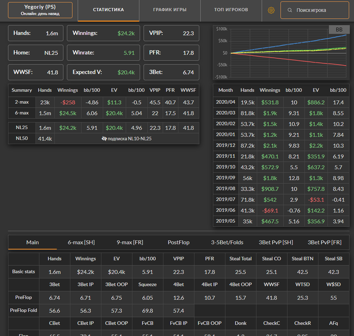 Ну к примеру. Вот я открываю топ виннеров за 3-6 мес на чико, айпокере или wpn. Куча игроков без отклонений от особенностей, описанных сверху. Потом открываю топ-виннеров старзов, где ботов нету. И поехали: