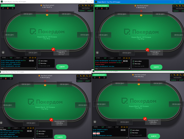 BombaZota13 @ 16.2.2021 Hangovergambit, Если есть какой то легальный софт где можно посмотрить ев и красную за все время - я бы взял, мне самому интересно)). С условием что я играю всегда 150 bb, считая что имею условное преимущество игры в глубоких стеках На микро играю 5-6 столов плотно, а на 5-10 3-4 так как экшена больше. Я не могу судить без софта, так как например там перебрал там недобрал, НО. Я могу сказать точно что до 10тки не нужно быть гением чтобы его бить, достаточно структурированного диапазона, концепции к/б понимания, игры на блаиндах и игры в мультипотах с фишом , и вдумчивой игры на мой взгляд.