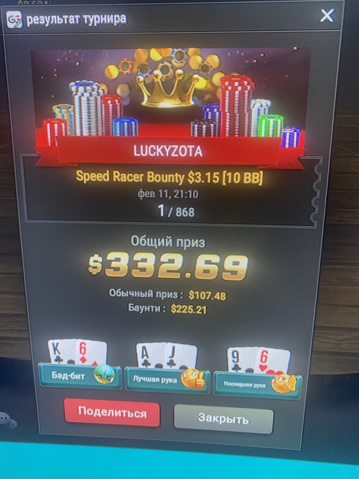Hangovergambit, аа ты о профите, с середины декабря закинул 3к, сейчас у меня уже 72к , изначально хотел турики посмотреть, а сыграв пару рук в кэш , посмотрев на пуши в 150bb решил чисто по фану покатать в кэш , вот уже второй месяца фана заканчивается даже блог создал, чтоб не скучать ))😂😂 Ну и попутно кэша на доме , играю турики на гг , а бр просто не вывожу так как остальное время я работаю /тренируюсь