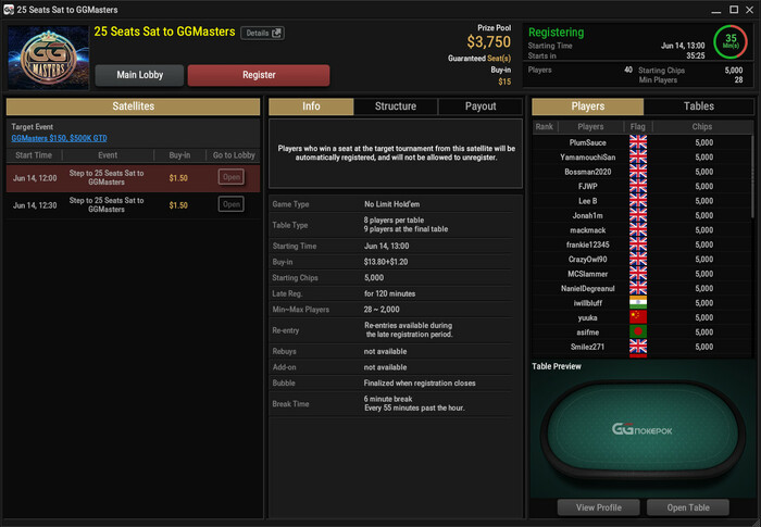 В общем, месяц еще есть. Посмотрю расписание. Будет видно. Жаль только веры совсем не осталось. Регулярные турниры не идут. Буду пробовать выстрелить на остаток в GGMasters через сателлит. Чем черт не шутит. Сейчас открыл лобби сателлита, а там такое: