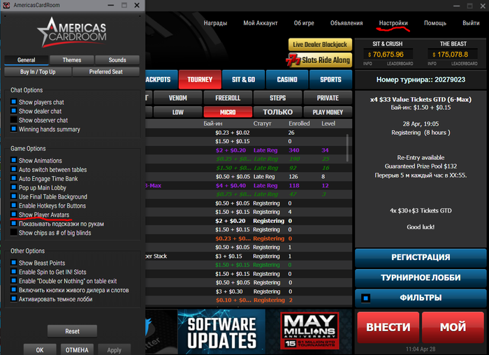 AC (покер-рум) как будто читают мой блог. Сегодня мне закинули 10$, видимо перерассчитали за турнир по 0.88$, где оставалось 37 чел в ИТМ и я был топ 2 стеком. Приятно, услышали мой гнев. Но всё равно за первое там давалось 66$