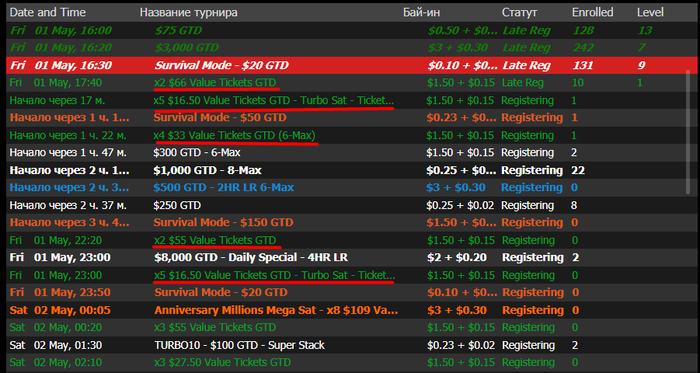 И последний вопрос, кто шарит в саттелитах. Сейчас БР 235$, в моём руме много 1,65$ сатов. Подскажите, насколько правильно их начинать катать? Думаю, что они слишком дисповые, так как там собирается до 100 человек на несколько билетов. Скрин этих сатов в лобби: