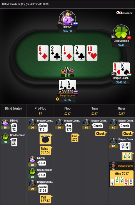 А вот красивая раздача, в которой проиграл, но вроде все сделал правильно: