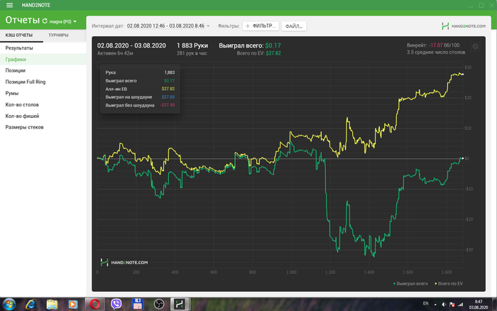 Andreyvorob3, Привет до депать не могу ,так как сейчас доход только покер ,ну сейчас отдохну после сессии этой ужасной,и там может буду играть нл2 , одну сессию смотреть как игра идёт,и второй сессией вылазить на нл5 ,думаю это будет самый оптимальный вариант, Спасибо за совет, я заметил что в 6+ качает по 20 би почти всегда ,