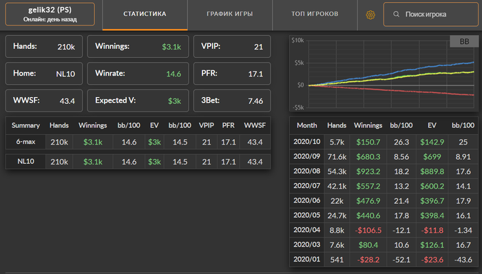 Всем привет! Ну наконец-то, я поправился и чувствую себя уже лучше, начал возвращаться в покер, на последней неделе сентября, стал подключать nl10 1-2 стола, надеюсь скоро там закрепимся! Пока такие результаты и багаж ошибок в придачу!