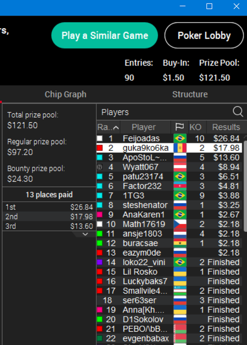 wildcat13, Сегодня полный треш за столами..,или это Я на такие попал?У поляны 100%диапазон пуша,и соответственно 100%диапазон приёма,независимо от структуры бордов,размеров стеков,и стадии турнира..Ну икак следствие проиграл неплохие степи..да?ДИСЦИПЛИНА хромает..