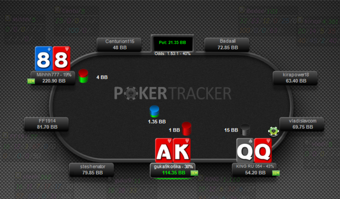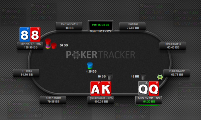 Была у меня такая интересная раздача, я до сих пор о ней думаю., правильно ли было принято мной решение, отправить в пас при таких стеках опп с неизвестный, рук нет, по шарку без дистанции, а с оппа я знаю и я понимала, что у него +