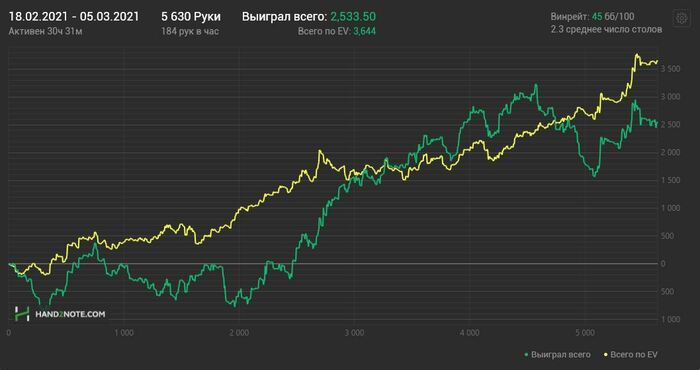 Лимит для меня закалдованный какой-то! Несмотря на то, что поляна ничем по ощущениям не отличается от нл 2. Возможно, самых отбитых даунов и меньше, но в целом те же дятлы и сидят, ту же дичь и творят... Рейк на этом лимите у меня вышел 25бб на сто, на нл 2 был 28бб на сто. Всё зависит от стиля игры человека. Знаю тех, у кого 40бб на сто на нл5 и винрейт такой же Потерпев поражение, я немножко приуныл и стал смотреть в х2н. Странные вещи увидел там... Например, если сижу я и 5 фишей, то стоит только одному из них уйти из-за стола, мне сразу же пиздец наступает Происходит какая-то магия, когда за столом всего 2, 3 или же 4 фиша. Просто невынимая меня насилуют