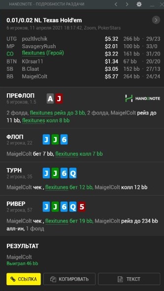 parenel, Префлоп у них на двоих было 6 аутов, но я скинул. 3вей алл ин это как в русскую рулетку играть)