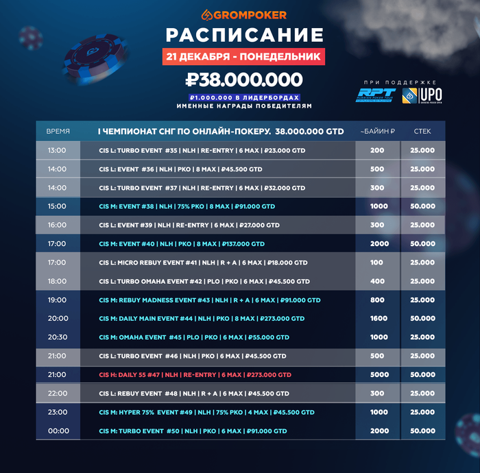 🔥 16 доступных и масштабных турниров с байинами от $120 до $1100.