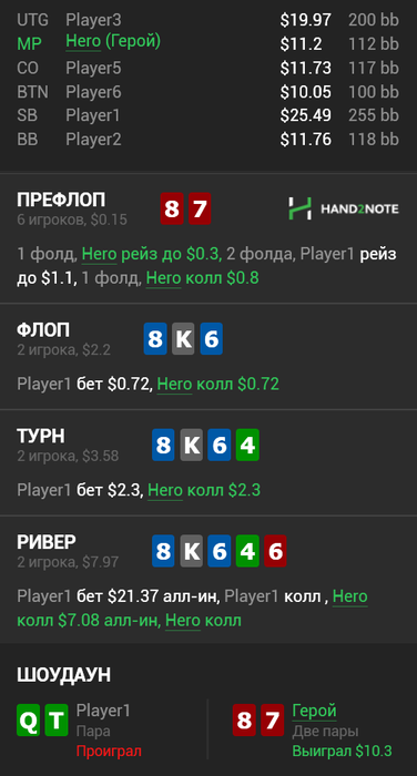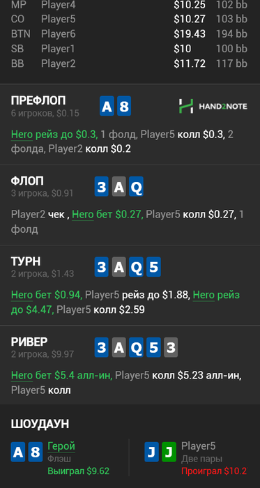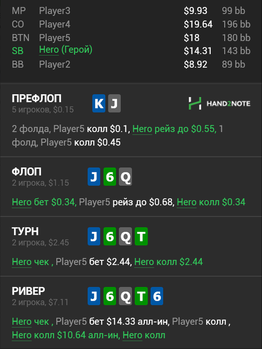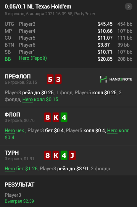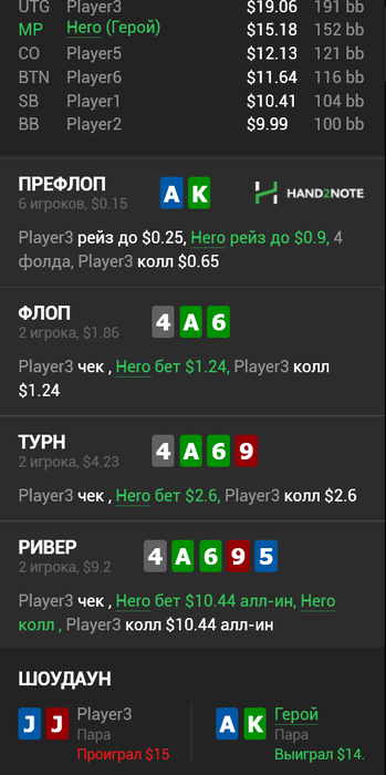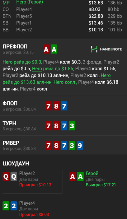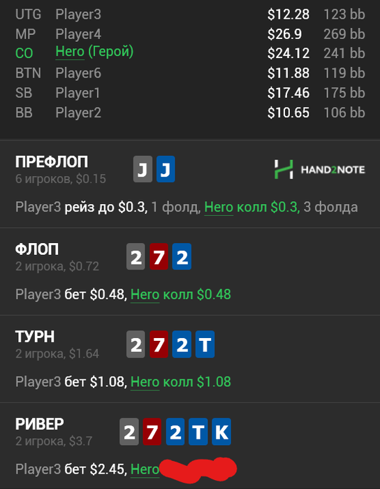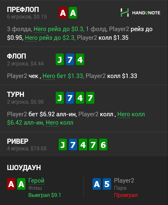 2. Мне кажется, что слоуплеи коллом 4бета на префлопе созданы для того, чтобы эстетично насосать на постфлопе. Почти всегда так делаю.