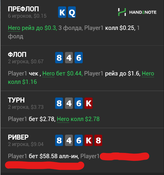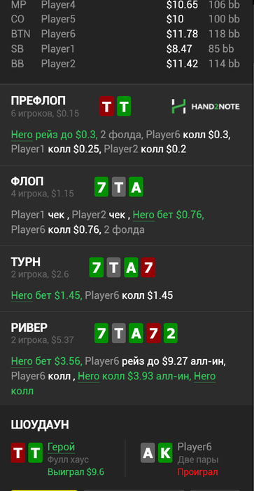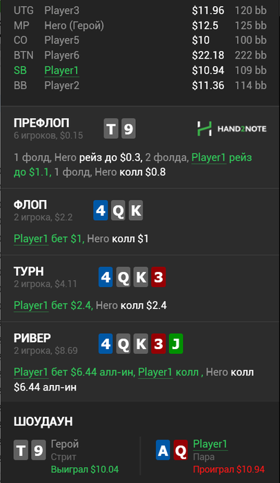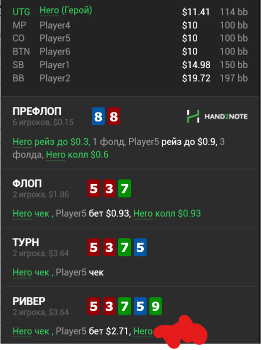 4.Тут из-за большого количества столов и плохого самочувствия и не так прочитал борд и подумал, что 10 была на флопе, даже посочувствовал регу. При разборе раздач я прозрел и проникся презрением к этому персонажу.