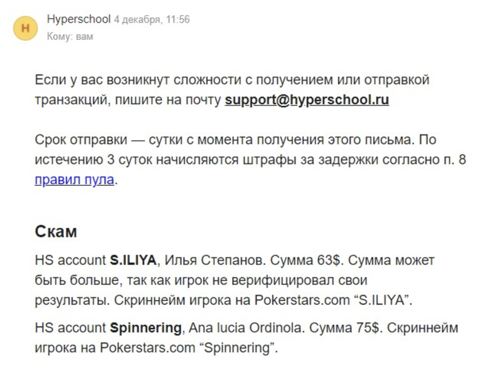 Я вообще в этой теме появился только потому что сам ТС попросил высказаться. Во 2 посте я писал уже от лица обычного игрока, который находится в пуле больше 3 лет и хорошо понимает, как тут все устроено. Потому что в разделе арбитражей так заведено - самое бурное обсуждение идет от людей, не связанных с ситуацией. В данном случае - никогда не состоявших ни в HSе, ни в других пулах, а потому не понимающих, как все устроено. Кстати, все кто появился в теме из обычных игроков HS, высказались в защиту этого решения.