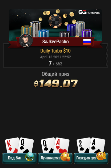 В начале года закинул на GG 100$ , закатал до 50 $ , потом прострелил пару турниров и потихоньку выстроился банкролл . Сейчас катаю только на GG . Приобрёл Simple Gto Trainer , купил ветку от Veaa , стараюсь перед каждой сессии откатывать тренажер до 100 рук . Хорошая разминка перед каткой .